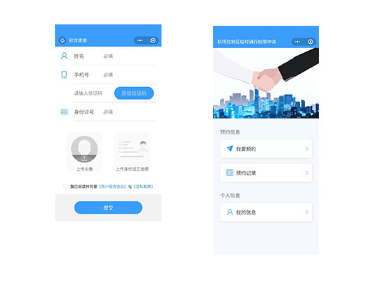 小程序采用定制化服務,根據客戶需要進行定制化,基于SaaS云端部署,實現外來人員來訪提前預約,到訪身份證核驗功能,滿足機場控制區對外來人員的有效管理。